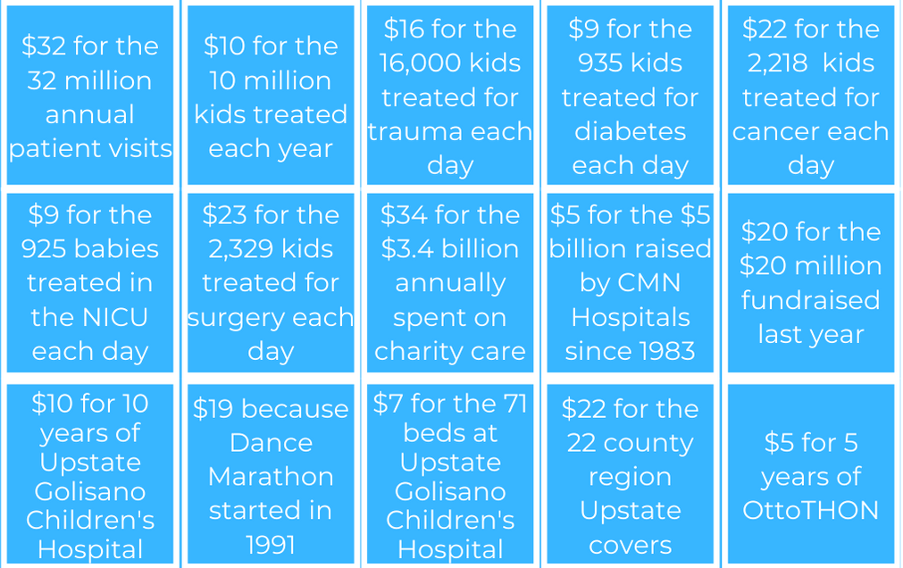 I also oversaw a team of executive board members, facilitated all external communications efforts (including, but not limited to, social media) and acted as a liaison between Upstate Golisano Children’s Hospital, Children’s Miracle Network Hospitals and OttoTHON’s executive board to strategically plan all external communication efforts.